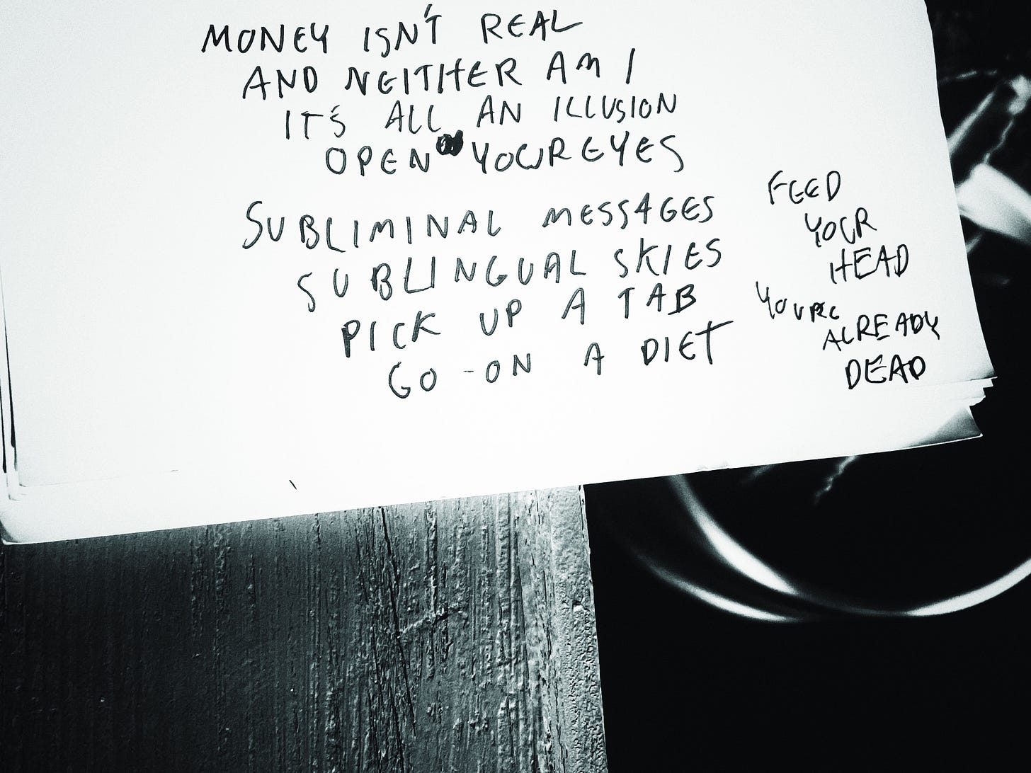 As is typical of the Speculative Music™️ practice, apophenic procedures were followed: lyrics were selected from the nearest notebook and draped over the track like finery.